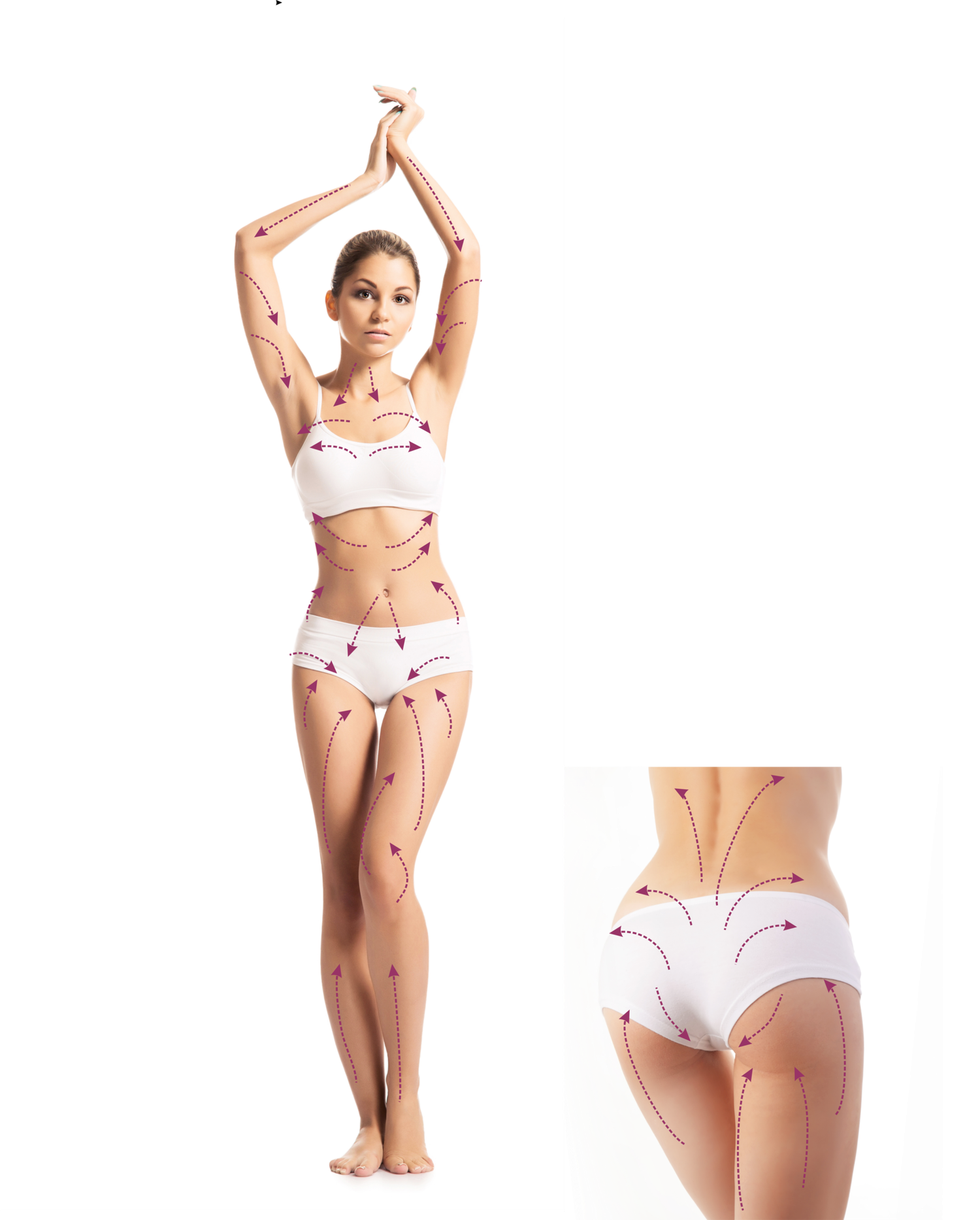 - Последовательность массажа: Начните массаж со ступней с движений снизу вверх. Прямыми растираниями двигайтесь по ногам, затем промассируйте бедра и ягодицы. Затем спина, бока, живот и руки от кистей вверх. Завершающей зоной растирания будут плечи. (На картинке постаралась нарисовать максимально понятно направления)