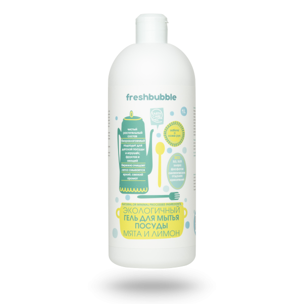 Гель для мытья посуды подходит для детской посуды и игрушек; фруктов и овощей. Обладает приятным ароматом мяты и лимона.