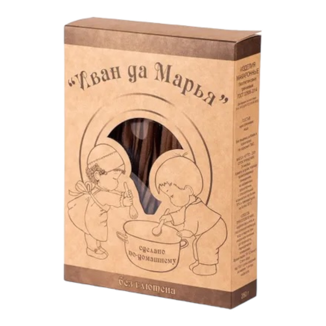 Макароны гречневые ИВАН ДА МАРЬЯ Лапша – продукт без глютена, крахмала, лактозы, сахара и белка, который по достоинству оценят приверженцы здорового питания. Макароны богаты калием, магнием, фосфором, железом, кальцием, витаминами из группы В, РР. Такое блюдо быстро насыщает, снижает риск болезней сердца и сосудов, способствует нормализации веса.