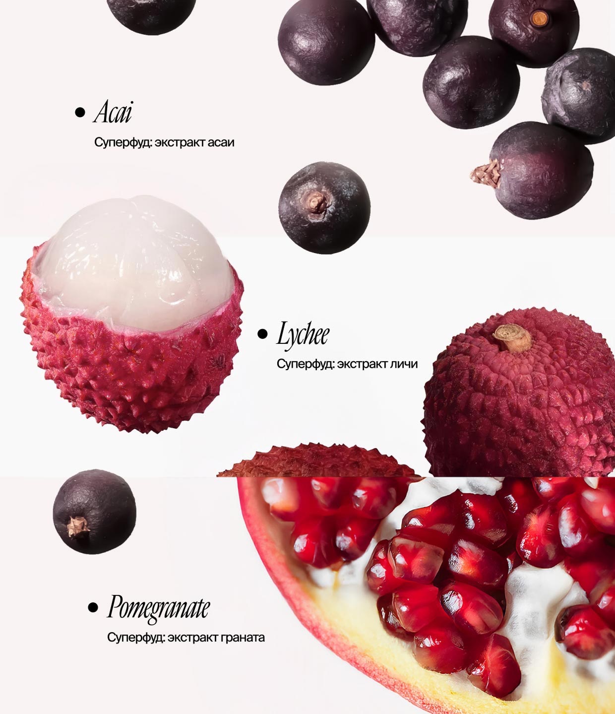 экстракт асаи — антиоксидант, защищает кожу от стресса и придаёт сияние.