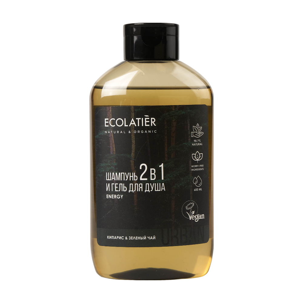 Мужской гель для душа и шампунь 2 в 1 Кипарис и Зеленый чай URBAN 600мл (ECOLATIER)