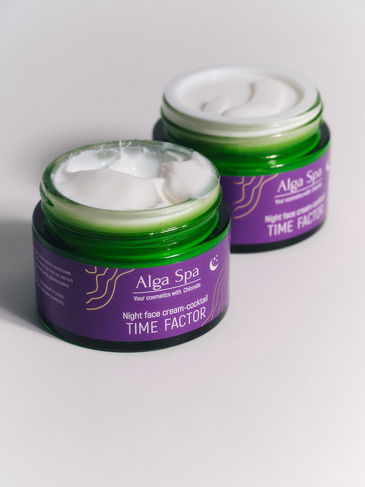 Ночной крем-коктейль для лица лифтинг эффект Night face cream-coctail TIME FACTOR, 50 мл (Alga spa)