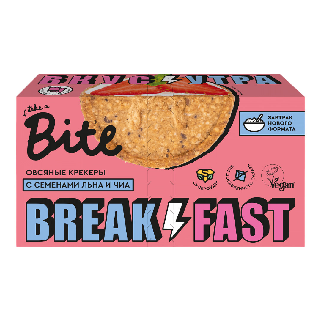 Овсяные крекеры Bite c семенами подсолнечника, льна и чиа — микс цельных злаков, отрубей и суперфудов. Здоровая альтернатива хлебу, булочкам и печенью. Это самостоятельный продукт, который вкусно и полезно есть просто так. А если добавить сыр, творог, хумус, авокадо, любимые овощи или фрукты — получится сытный и питательный завтрак, который подарит заряд сил и энергии на целый день.