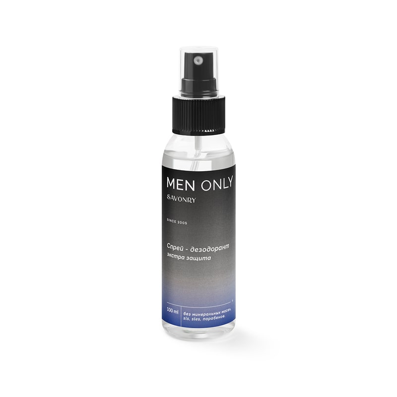 Натуральный спрей - дезодорант ONLY FOR MEN эффективно нейтрализует запах пота и сокращает потоотделение, при этом позволяет коже дышать, не закупоривая потовые железы.