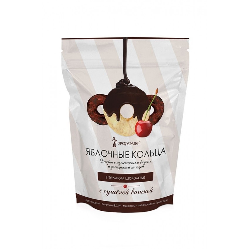 Яблочные кольца в темном шоколаде с молотой вишней 100 г (ЭкоФермер)